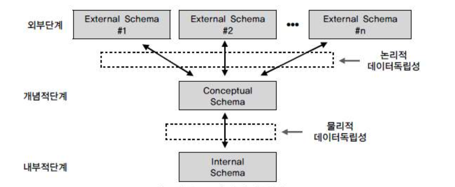 - 개념적 스키마가 변경해도 외부스키마 영향 없음