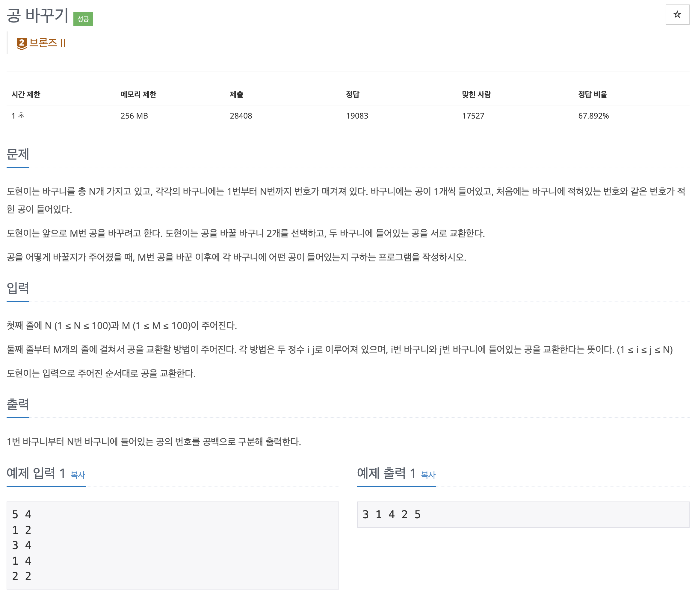 int M = Integer.parseInt(st.nextToken()); // M번의 공 교환 방법
