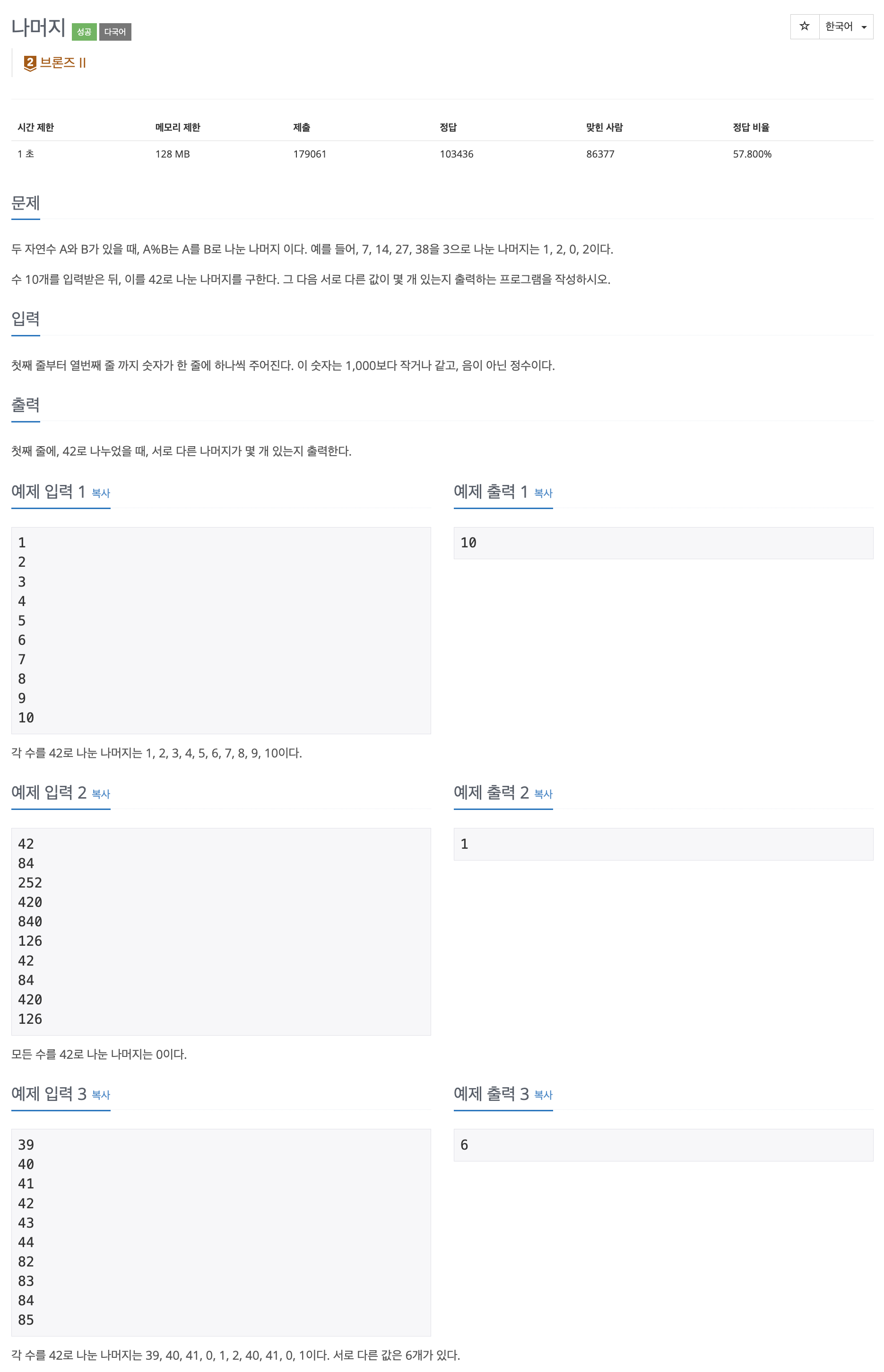- 5~6 line : input 배열의 값을 42로 나눈 나머지가 result 배열에 포함되어있지 않으면 push