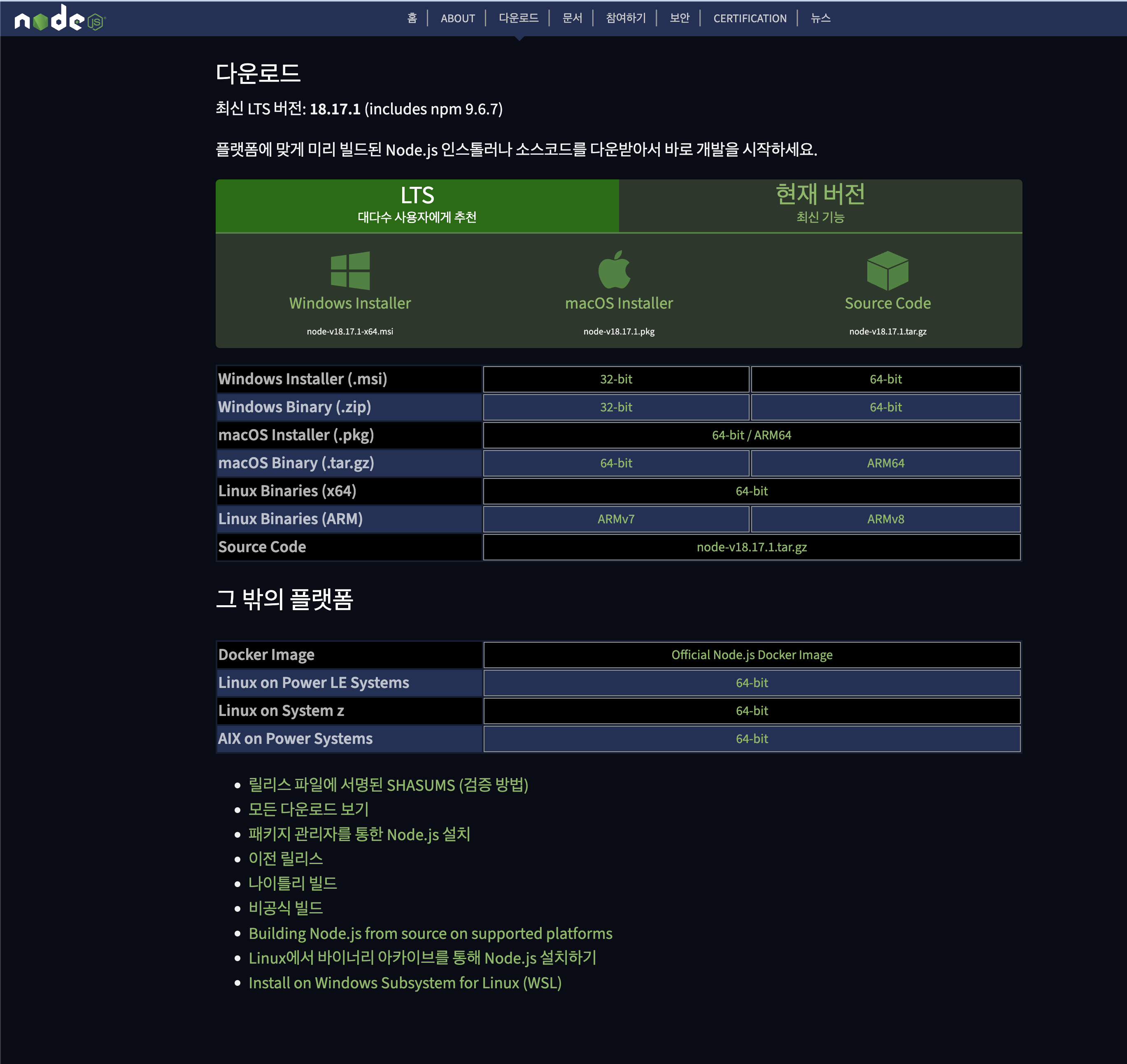 node.js 공식 홈페이지에 'Download' 들어가서,