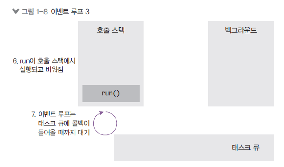 현재 왼쪽 그림 1-6에서, setTimeout()이 호출 스택에 쌓임과 동시에,