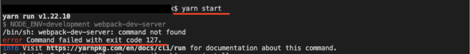 react 프로젝트 실행을 위해, yarn start 커맨드를 입력 시 발생했다.