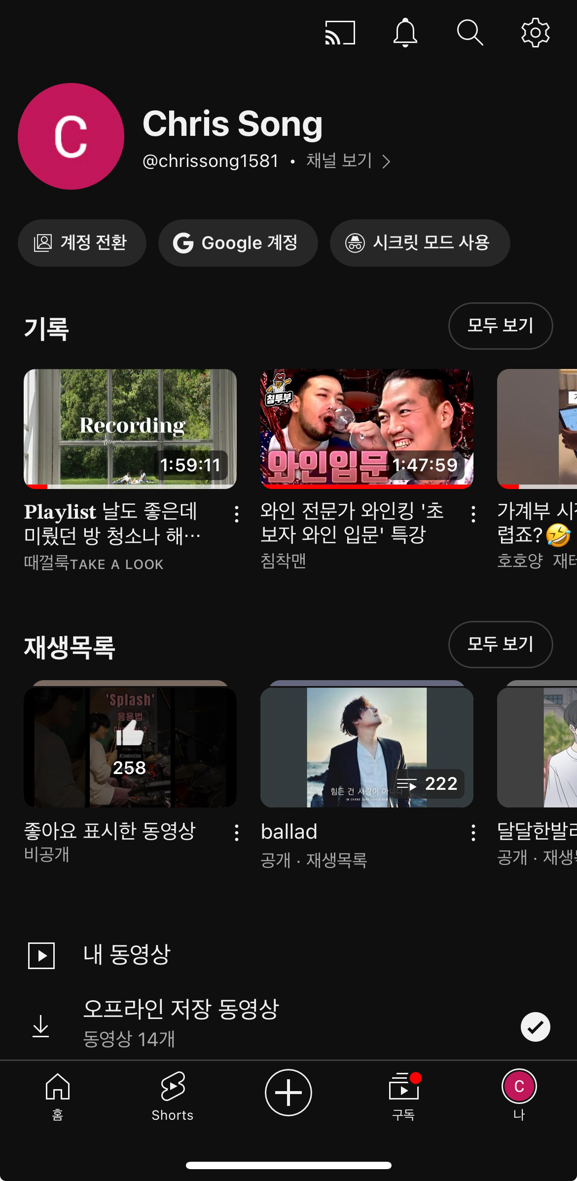 기존에 내가 좋아요 눌렀던 영상은 물론이고,