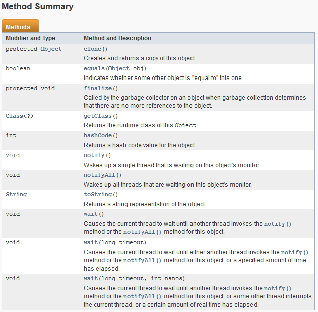 https://docs.oracle.com/en/java/javase/11/docs/api/java.base/java/lang/Object.html