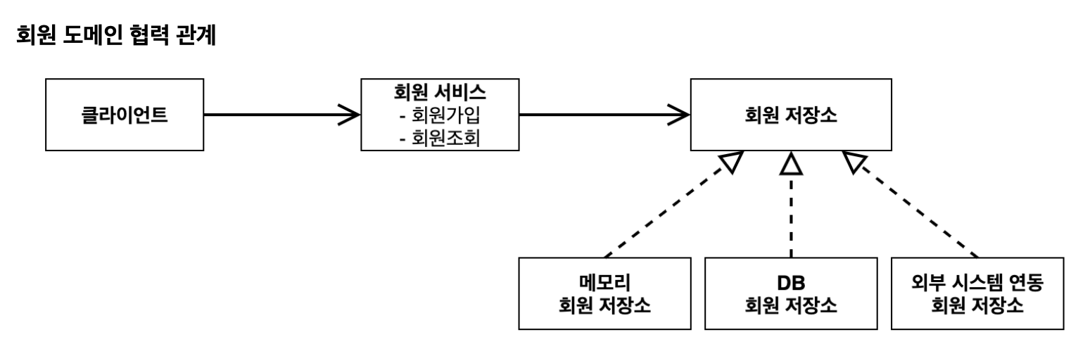 - 실제로는 MemoryMemberRepository를 사용하여 회원 정보를 메모리에 저장하고 조회한다.