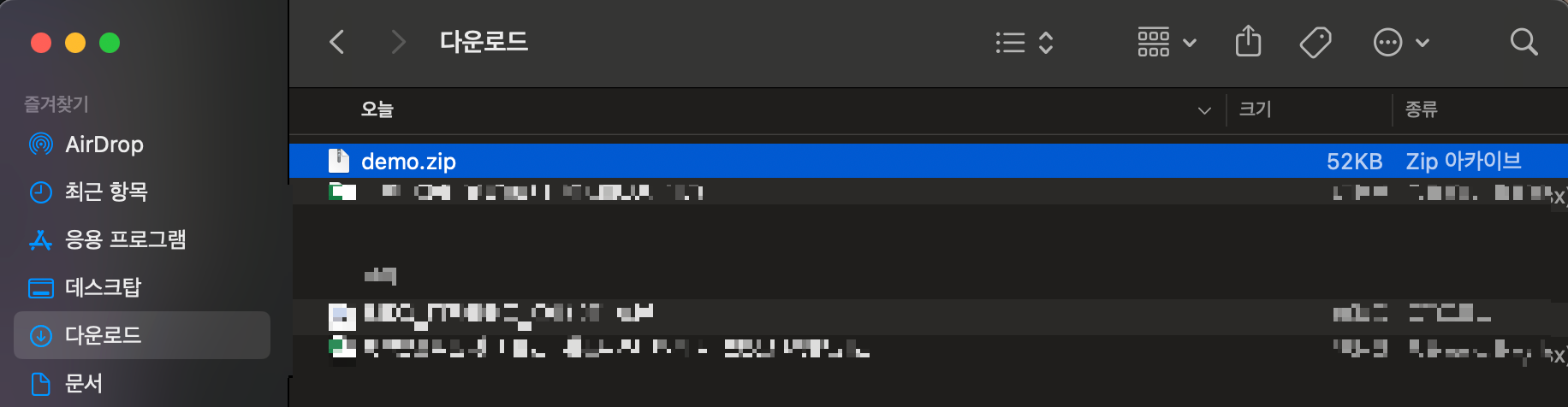 다운로드 폴더에 아래와 같이 demo.zip 파일이 생긴다.