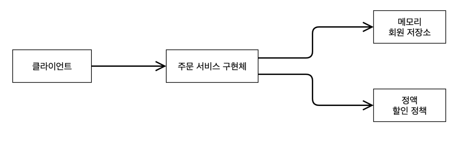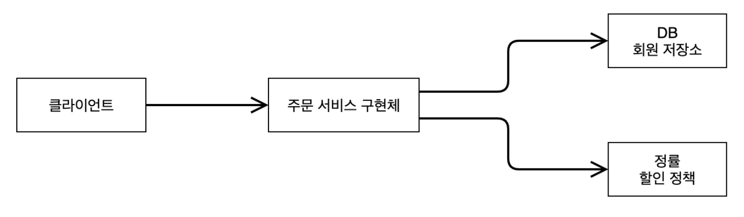 - 회원을 메모리에서 조회하고, 정액 할인 정책을 지원해도 주문 서비스를 변경하지 않아도 된다.