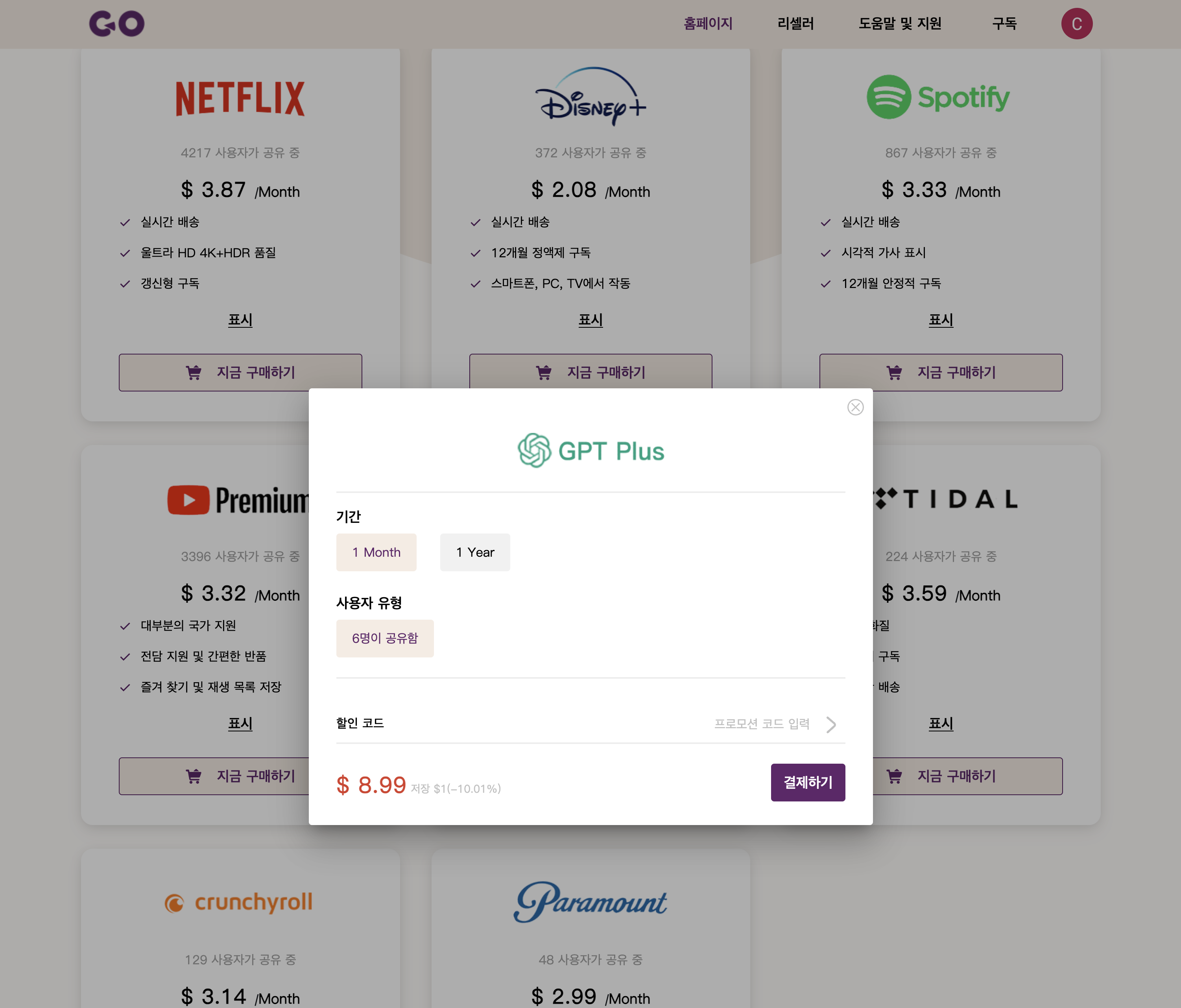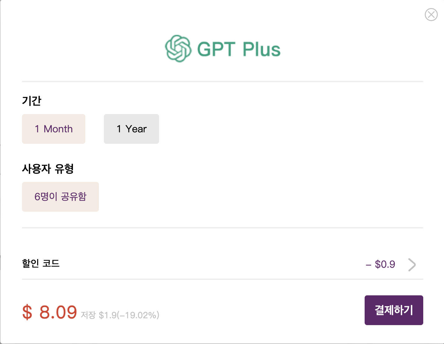 여러 유저와 하나의 챗GPT 계정을 공유하기 때문에 저렴해지는 방식이다