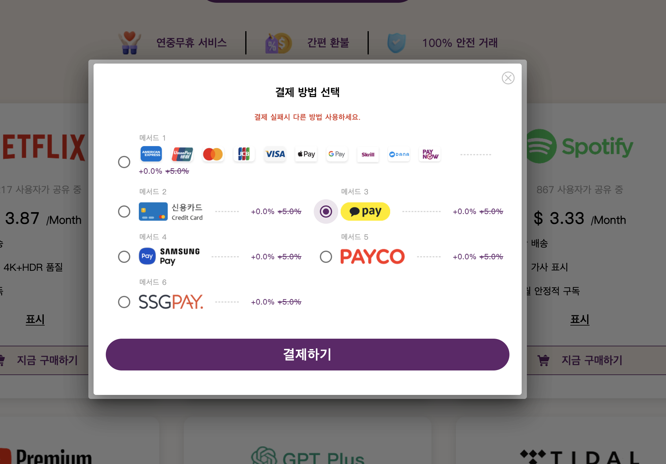 결제는 삼성페이나 카카오페이, 쓱페이 등