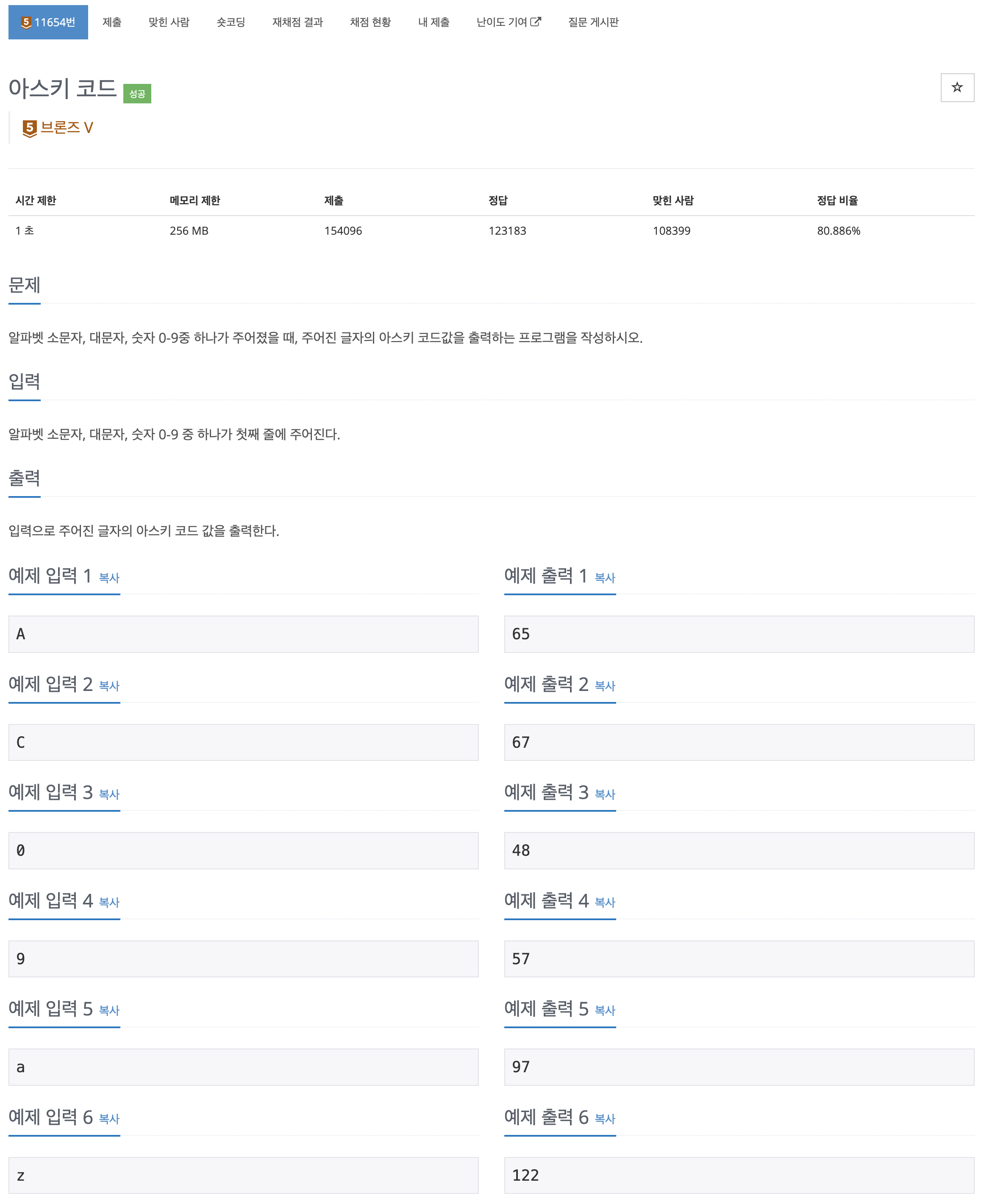 백준 9086 11654 11720 Java & Javascript 문자열, 아스키 코드, 알파벳 찾기 본문