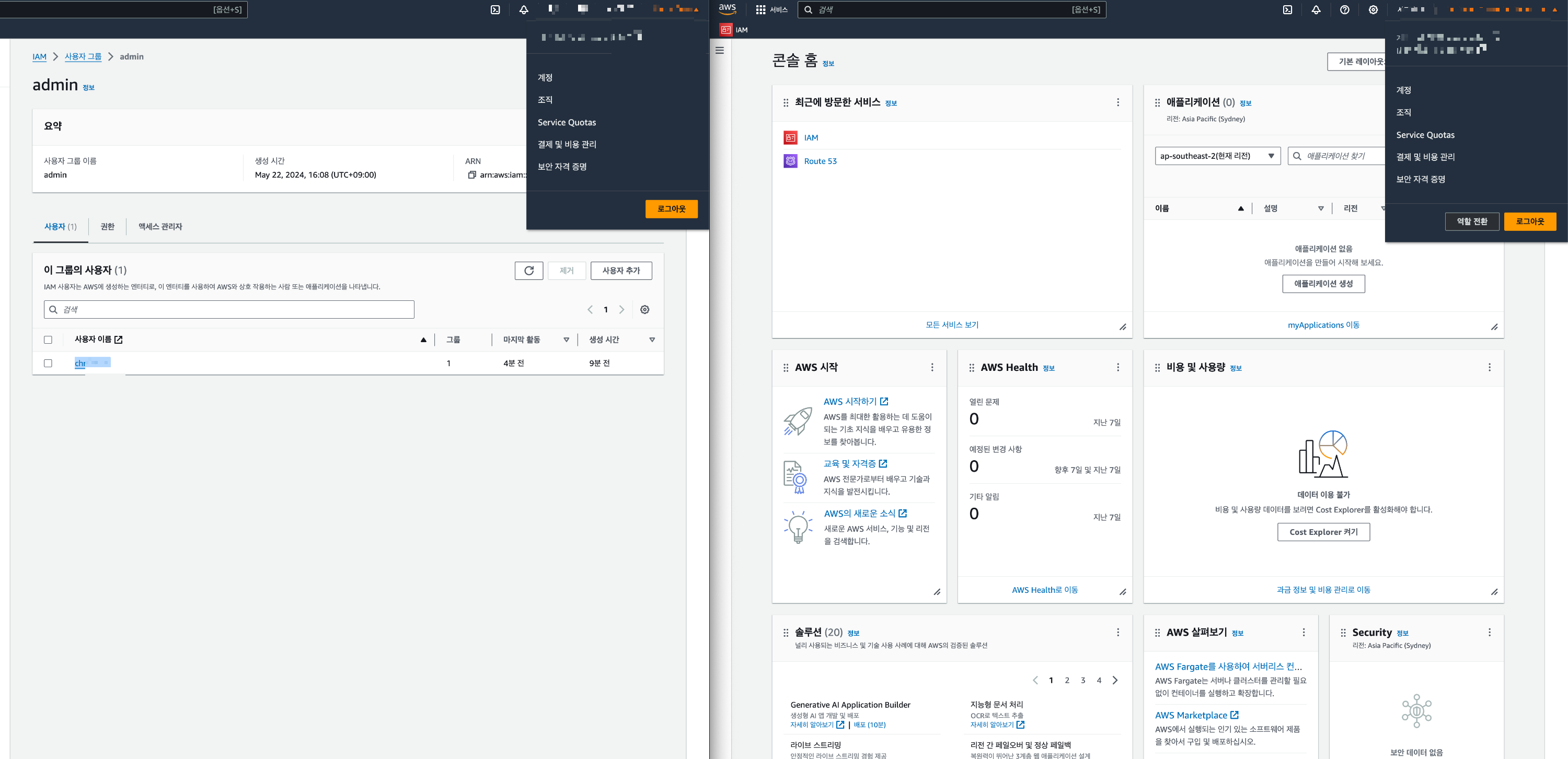 아래와 같이 루트계정과 IAM 사용자가 동시에 로그인 가능하다.