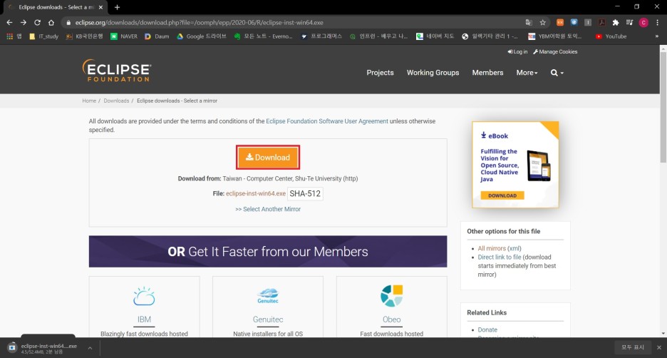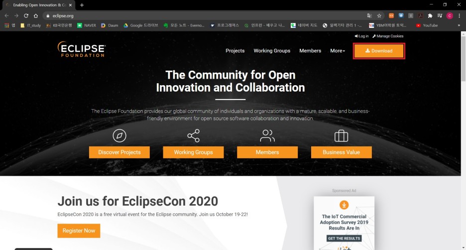 https://www.eclipse.org/ 링크로 접속하셔서 우측 상단의 다운로드를 클릭해주세요!