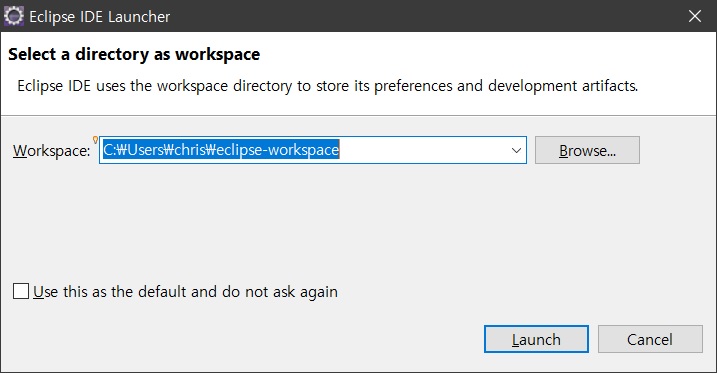 좌측하단에 체크박스는 나중에 다시 실행해도 안물어보게 하는건데, workspace가 여러개 생기거나,