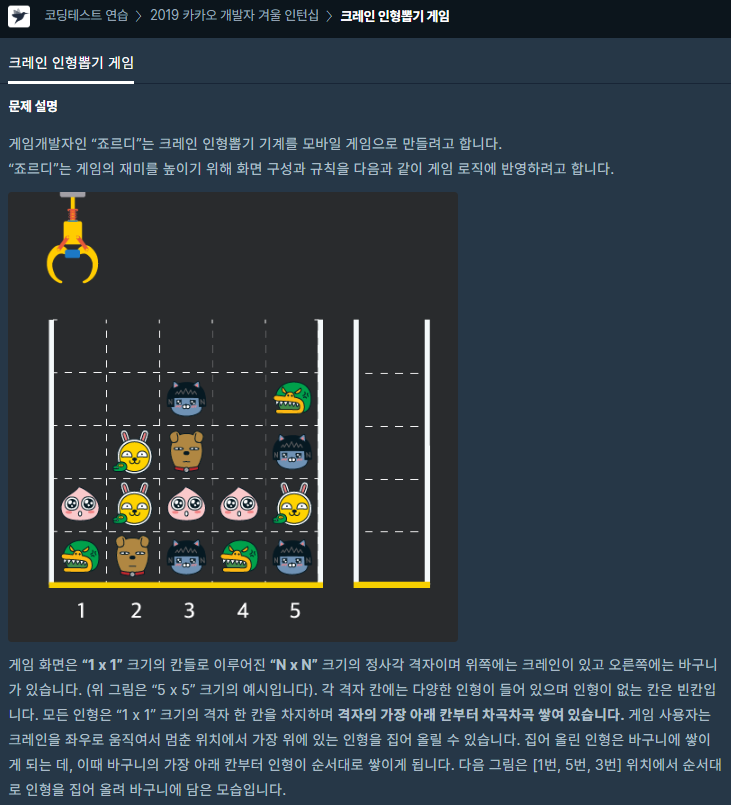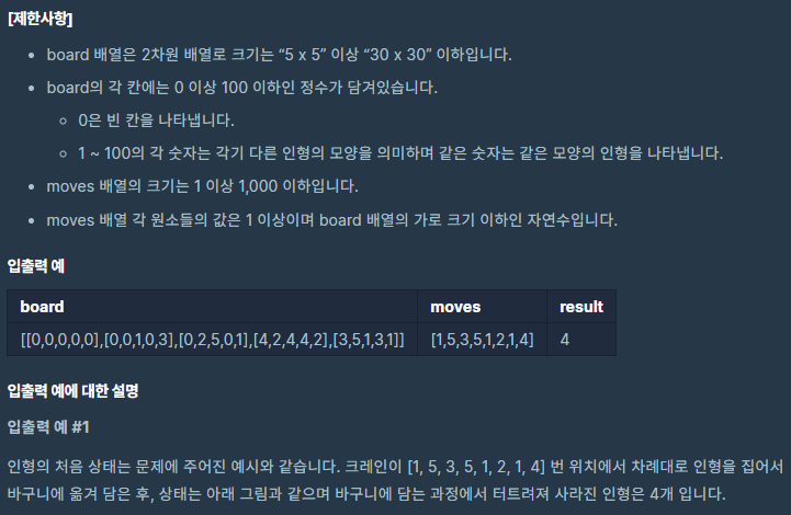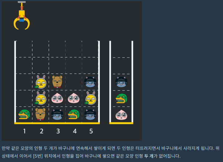 문제 출처 : https://programmers.co.kr/learn/courses/30/lessons/64061