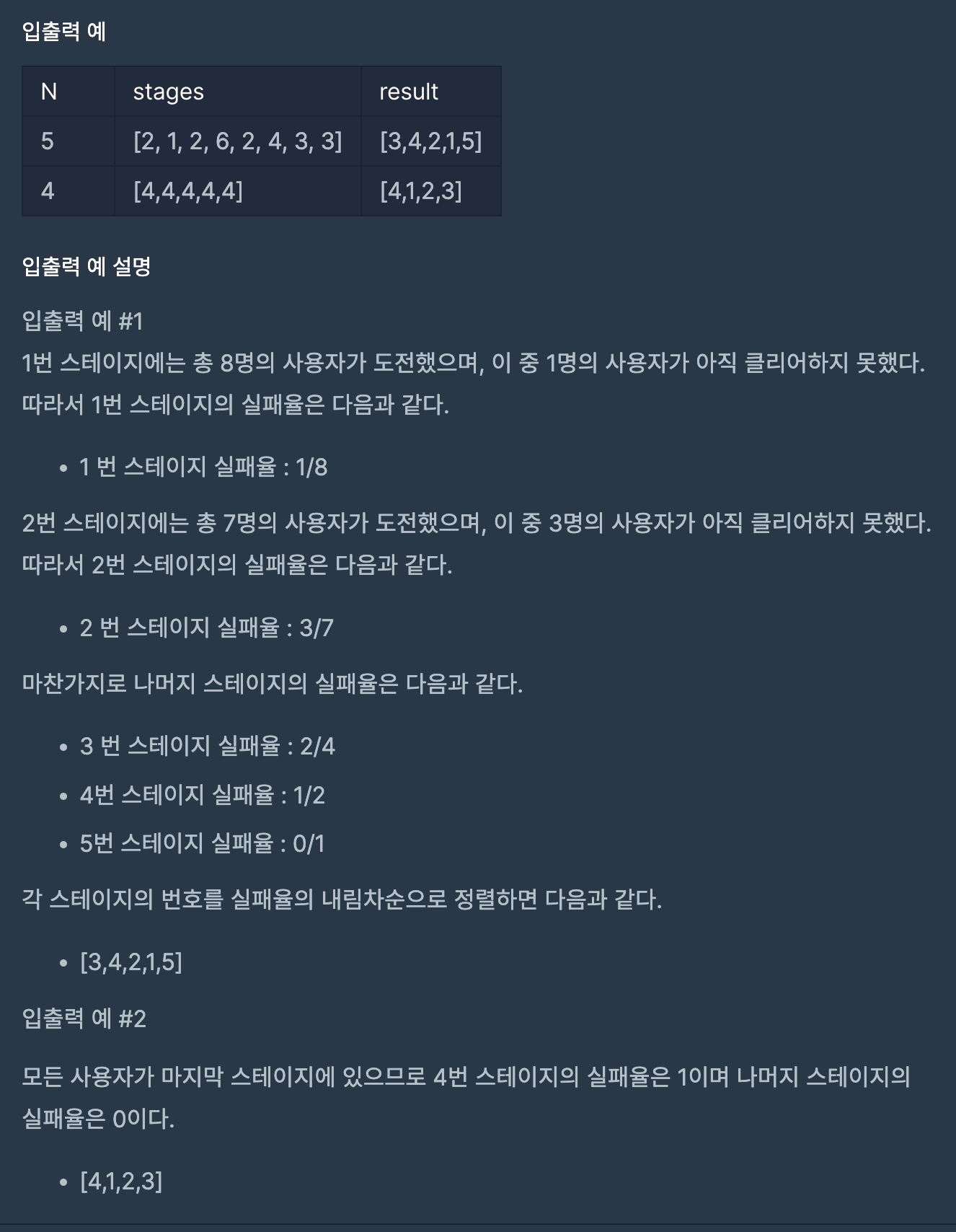 코딩테스트 연습 - 실패율