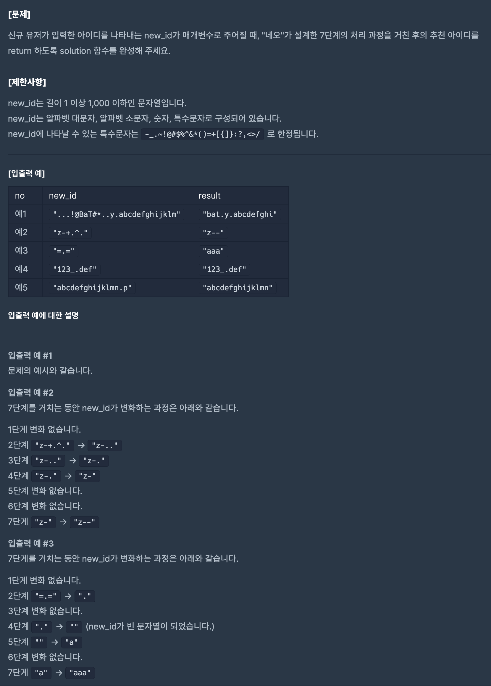 문제 출처 : https://programmers.co.kr/learn/courses/30/lessons/72410